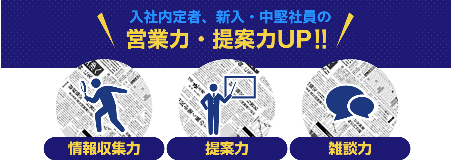 道新ビジネスサポートでは、企業様のニーズに応じ「内定者」「新人」「若手のフォローアップ」など対象や研修の目的にあわせて「北海道新聞を読む」「記事をもとに提案を考える」「討議・発表する」といったプログラムを行っています。